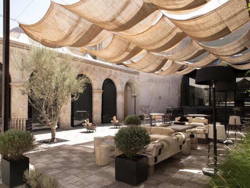 CIRQA, a luxurious hotel set in a 16th-century monastery, blends colonial architecture with modern design. Located in Arequipa, it offers stunning views, exquisite dining, free Wi-Fi, 24-hour reception, airport transfers, smoke-free rooms, room service, and a delicious breakfast.